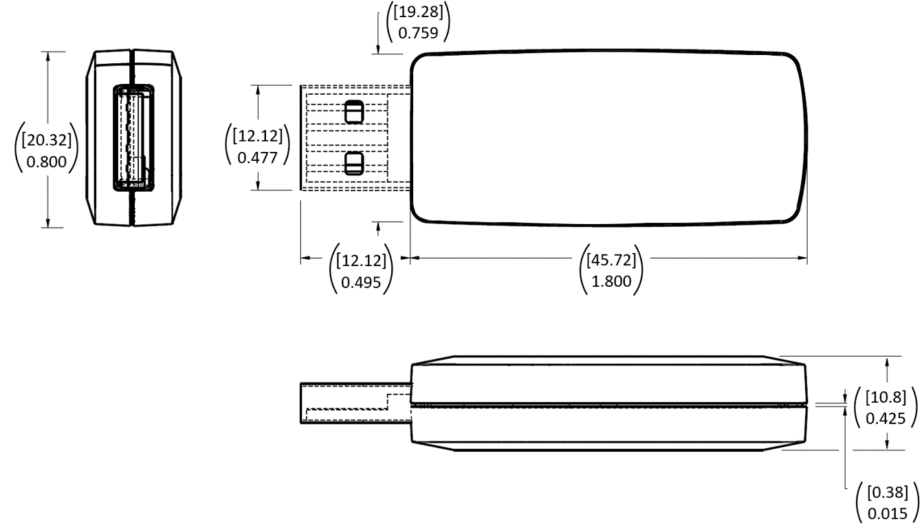 - Dimensions totales : H 2,295″ (58 mm) X L 0,759″ (19 mm) X P 0,425″ (11 mm)